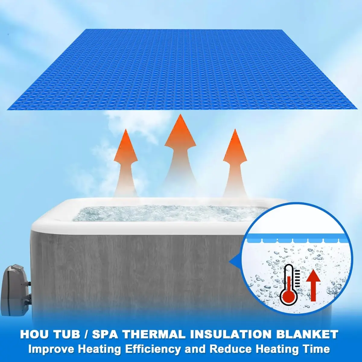 With a premium 16 MIL thickness, our hot tub bubble cover significantly outperforms the commonly available 8–12 MIL covers, surpassing industry standards. Through prolonged use and inclement weather, your spa bubble cover will continue to provide excellent durability and thermal performance thanks to its increased thickness.The increased thickness delivers multiple performance advantages: