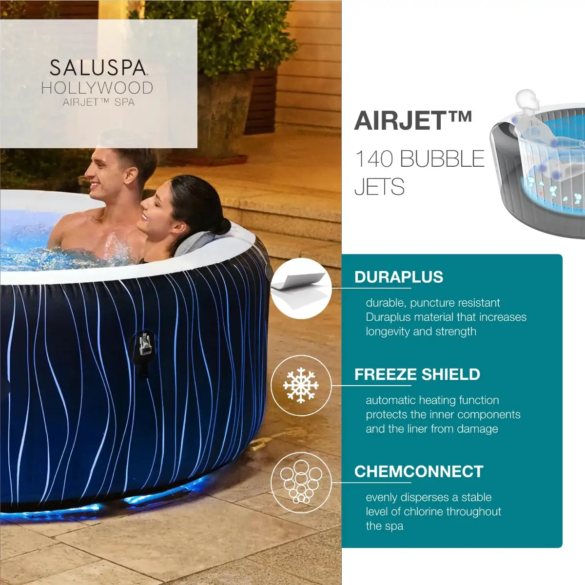 SaluSpas with Freeze Shield are equipped for year-round, all-weather use.